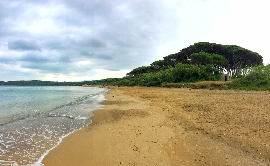 Nel Golfo di Baratti il mare cristallino, la storia e la natura selvaggia si incontrano in un connubio perfetto. La sabbia della sua spiaggia libera è di colore più scuro per la componente ferrosa rimasta dall’antica lavorazione del ferro da parte degli Etruschi che qui fondarono un porto, insediamento tra i più importanti in Toscana. La baia è circondata da pinete e si affaccia su un vero e proprio museo a cielo aperto: in basso la necropoli, oggi parte del Parco Archeologico di Baratti e Populonia, in alto l’acropoli da cui ammirare il profilo dell’isola d’Elba e della Corsica nei giorni di cielo nitido.