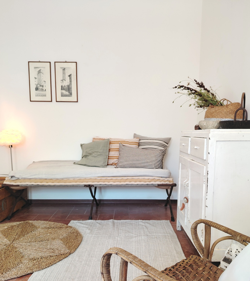 Ampia e luminosa. A disposizione un cassettone un letto matrimoniale e eventualmente si può aggiungere un altro lettino.